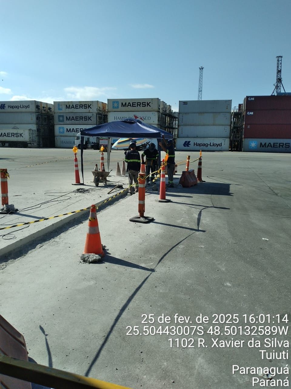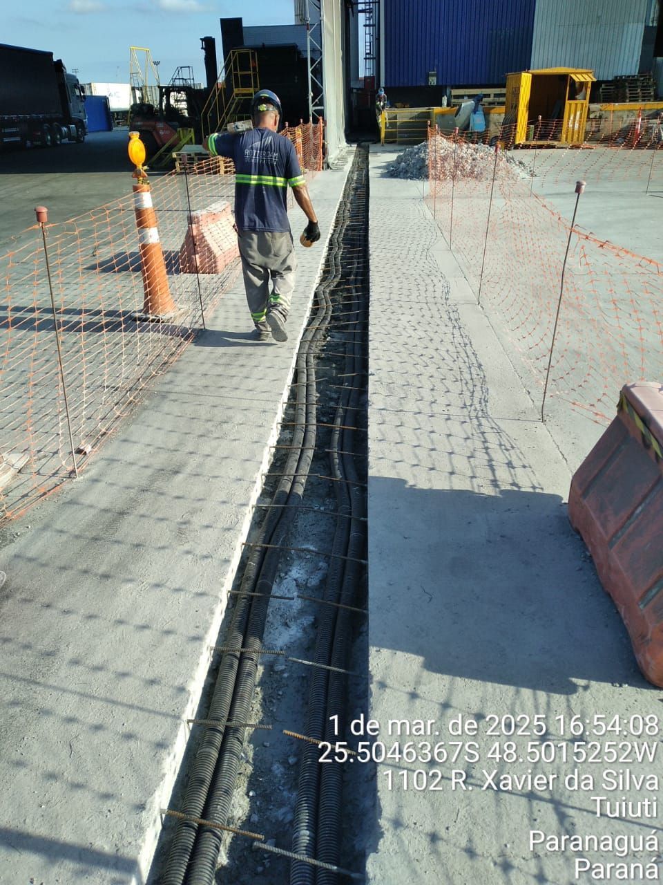 Devido à natureza crítica das instalações, a obra exigiu comunicação constante com as equipes de engenharia elétrica e técnicos de segurança do terminal, garantindo total conformidade com as normas de proteção contra choques elétricos e riscos operacionais.