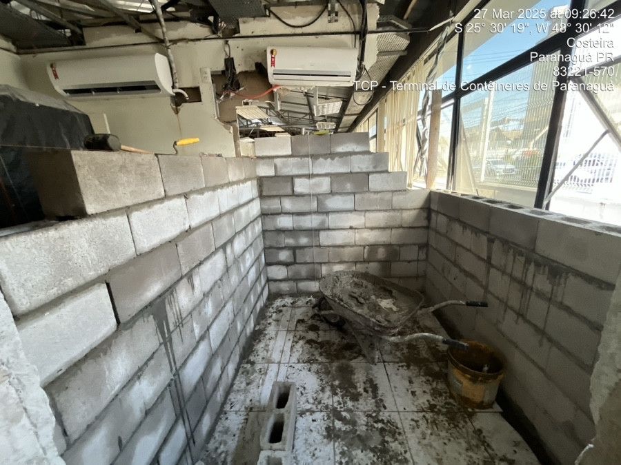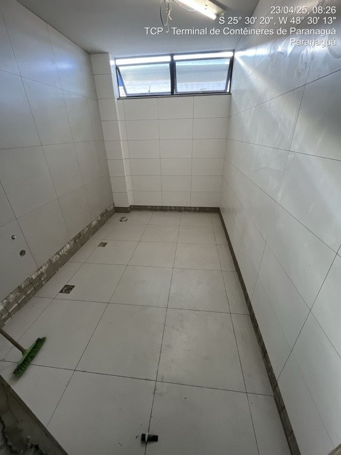 Reforma completa de duas subestações elétricas responsáveis pela alimentação de áreas estratégicas do terminal portuário. As intervenções abrangeram a recuperação de esquadrias, adequações internas, substituição da cobertura, recuperação de acabamentos e concretagem de pisos, com registro e acompanhamento por meio de corpos de prova.