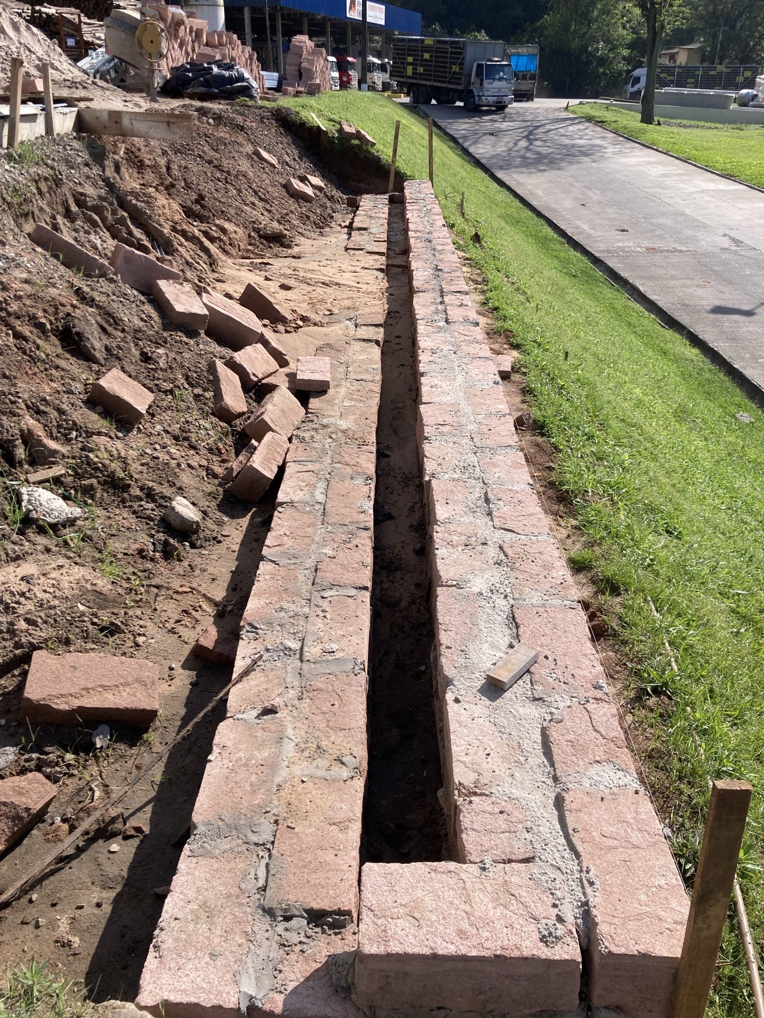 Após a vistoria técnica inicial, foi traçada uma solução de estabilização com base em um projeto executivo elaborado em caráter de urgência. Os reparos estruturais começaram em seguida, com foco total na segurança, estabilidade e no restabelecimento da operação da área afetada.
